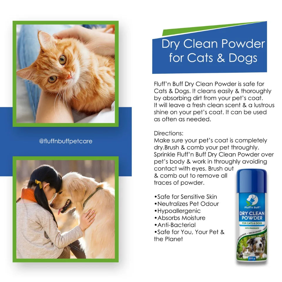 1. Introducing Fluff’n Buff Petcare Products’ Dry Clean Powder for Cats and Dogs with Fragrance2. Convenient grooming...