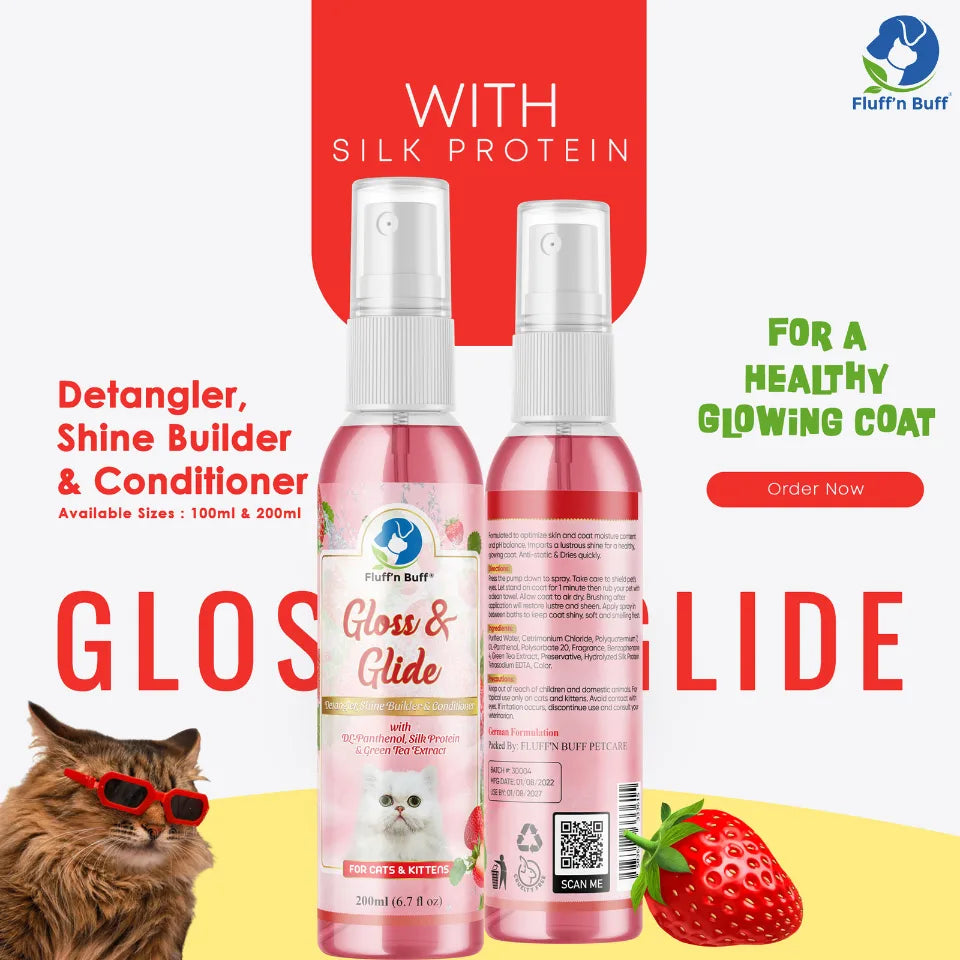 1. Introducing Fluff’n Buff Petcare Products’ Gloss & Glide Spray Strawberry Scented for Cats and Kittens, a...